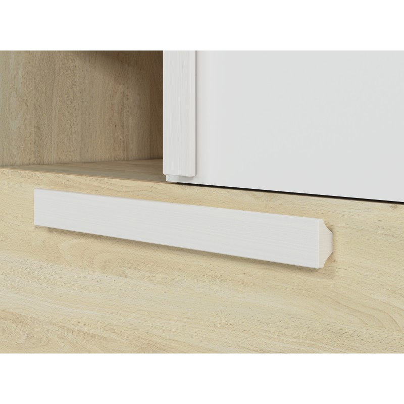Zastosowanie naturalnych materiałów w postaci drewnianych uchwytów pomalowanych na biało to dodatkowy element wzbogacający tę kolekcję oraz wpisujący się w skandynawski styl.