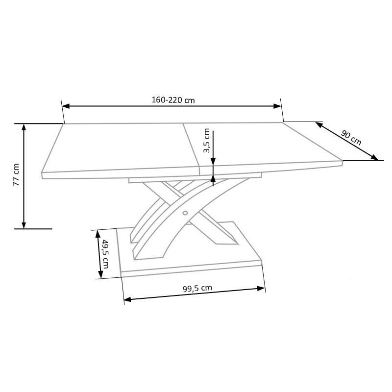 wymiary: 160÷220/90/75 cm, stół rozkładany, materiał: MDF laminowany / stal malowana proszkowo, kolor: dąb złoty - czarny UWAGA: po wylaniu jakichkolwiek płynów na blat stołu należy niezwłocznie wytrzeć go do sucha w celu uniknięcia wchłonięcia wody przez materiał blatu.
